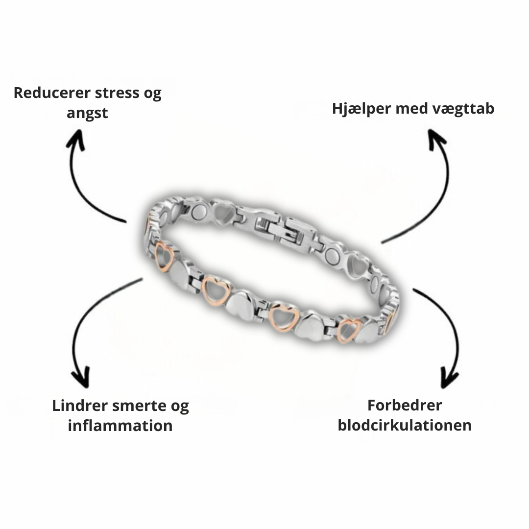 Når du bærer armbåndet, interagerer magneterne med kroppens naturlige magnetfelt og skaber en magnetisk kraft, der fremmer velvære på flere måder.